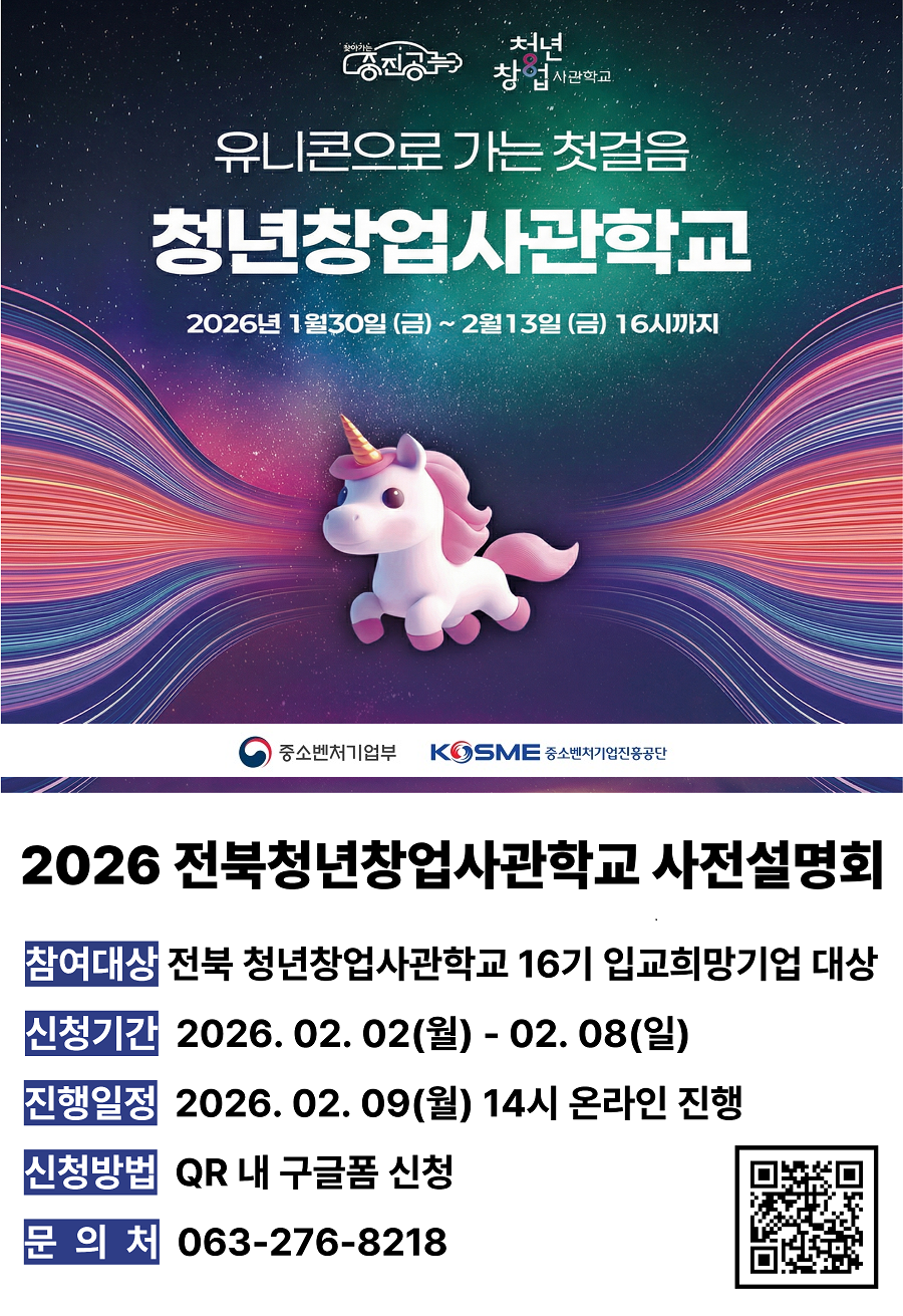 2026년 전북청년창업사관학교 사전설명회(온라인)