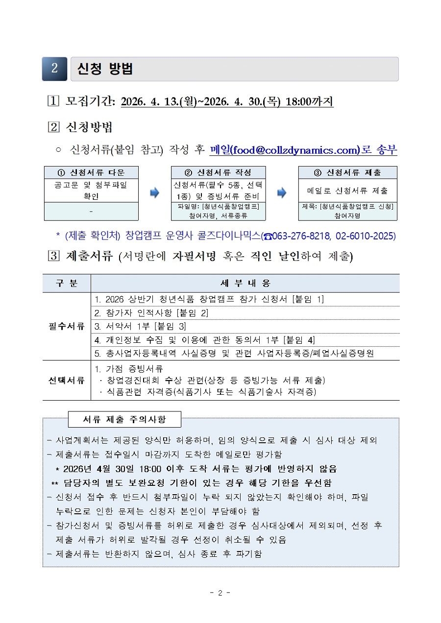2026 상반기 청년식품 창업캠프 참여자 모집 공고